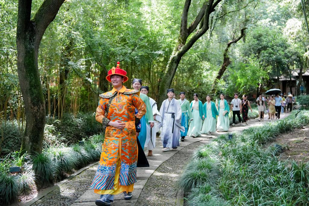 以《蘭亭集序》為背景,串聯音樂、歌舞、武術,結合專業演員傾情演繹。創新景區演藝,呈現全新國風大秀,實景演藝,震撼呈現。深度還原《蘭亭集序》中的經典場景、人物形象和故事情節。走!和王羲之、康熙帝一起踏上在蘭亭的奇幻之旅!