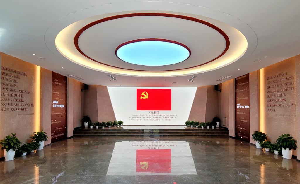 宣誓廳是一個莊嚴的場所,在這里可以重溫入黨誓詞以及團、少先隊員。四周是不同時期的入黨誓詞,體現了中國共產黨在不同時期更改誓詞的內容,更加符合當時的時代背景。