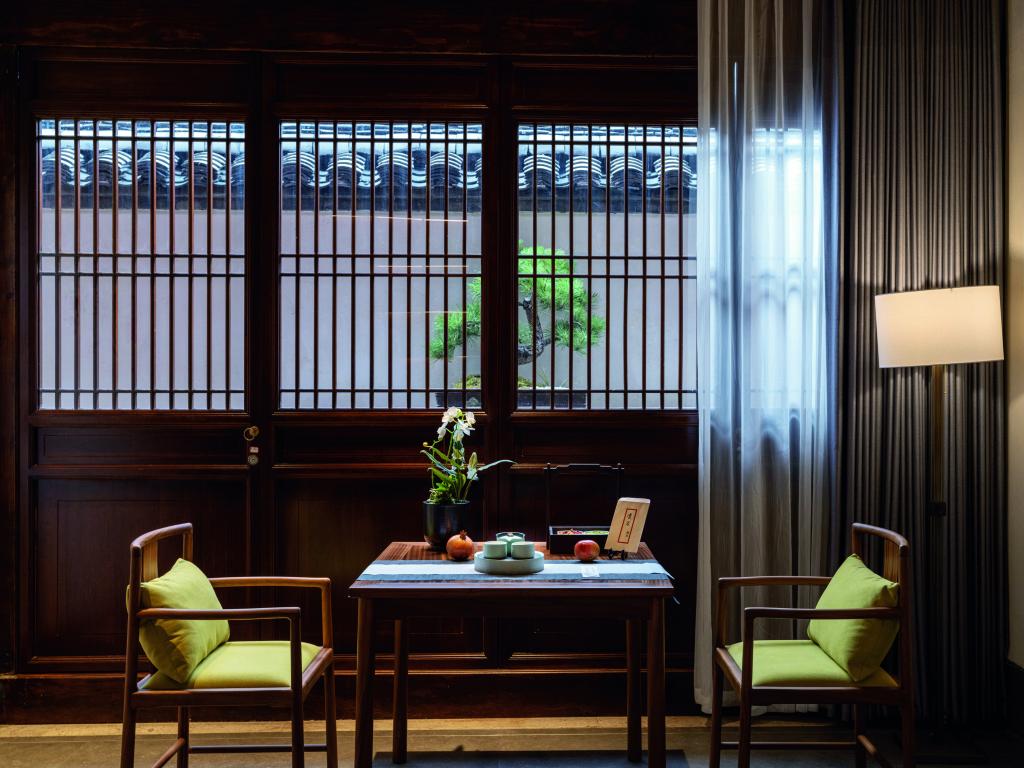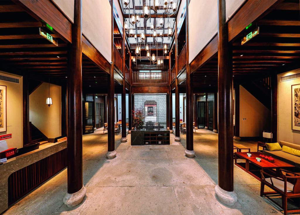 青藤別苑位于紹興市越城區后觀巷35號(徐渭藝術館西側),是具有徐渭文化特色的主題酒店。整體建筑面積780平方米,分上下兩層,主要經營住宿服務。酒店設有八個不同類型的房間,套房主題分別為渡海、眠松、行吟、行舟、對弈、扶醉、漁者、菊石、觀棋。入住其間,隨處可見文人筆下紹興人文風物的靈秀。酒店還采用 “奪得千峰翠色來” 的越窯青色為局部墻體上色,營造出溫馨放松的居住環境??头抗艠闱逖?,干練的空間線條、高級的材質以及藝術化的裝飾,都以低調的設計展現著空間的本質,讓賓客在休憩之余能感受到古今韻味的自然連接,筆墨流轉間彰顯臺門禮序,簡筆勾勒中續寫江南古韻。