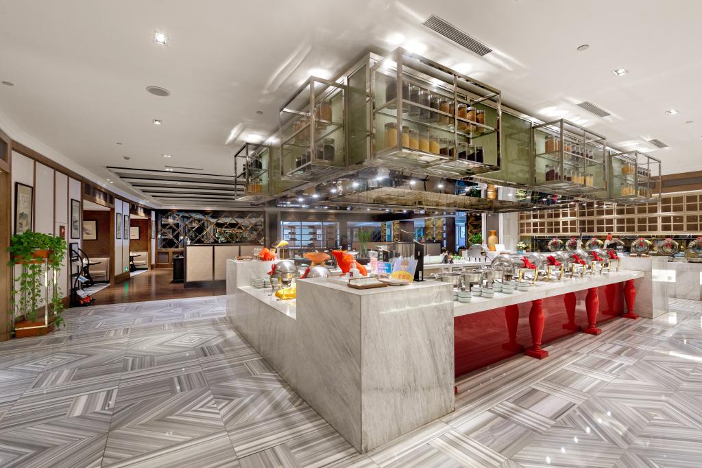 國際大酒店位于府山西路100號,酒店恪守“賓客是我們的朋友”的信條,堅持為賓客提供尊貴的禮遇和殷情的服務,思蕓自助早餐廳,中西美食菜品豐盛,精致可口。
