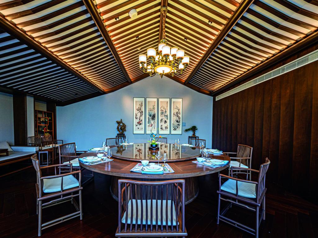 榴花齋位于后觀巷33號,是以紹興菜為背景,致力于呈現紹興菜精華的主題餐廳。餐廳秉持以景入肴、以詩入肴、以畫入肴的理念,結合時令創制出與徐渭文化相關聯的菜品,用美食致敬徐渭,打造獨特的紹興城市味道。餐廳還從徐渭的詩作“半生落魄已成翁,獨立書齋嘯晚風。筆底明珠無處賣,閑拋閑擲野藤中”選取“青藤”“榴花”“明珠”“晚風”四個獨具徐渭意向與符號的詞匯命名四個包廂,在表達對徐渭致敬的同時,也為賓客帶來一場文化盛宴。