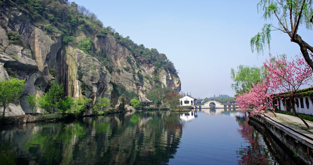 ??? 東湖所在地原為一座青石山,石質優良,因毗鄰大運河,地理位置獨特,交通便利,自漢代起石工相繼至此鑿山取石,用于建城修路、圍堤造橋;經過千百年的鑿穿斧削,遂成懸崖峭壁,奇潭深淵,于湖光山色間鑄就了東湖獨特的自然景觀雛形。至清末,紹興鄉紳陶濬宣依據先祖陶淵明《桃花源記》之意境,巧妙布局構景,將東湖山水之秀再做雕琢,筑樓架橋、疊山理水,形成了“橋如虹,水如空,一葉飄然煙雨中”的江南詩畫意境。東湖,...