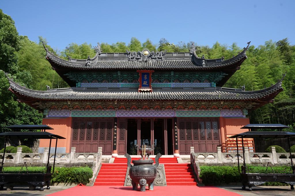 享殿,是禹陵的主體建筑之一,為后人供奉大禹神位、祭祀獻饗之處。始建于明嘉靖年間,與大禹陵碑同屬紹興知府南大吉所建,到清末已完全損毀,現存建筑于2007年11月開工重建,至2008年完工。享殿建筑風格布局與禹廟大殿相同,正殿五間,重檐歇山頂,南北配殿各三間