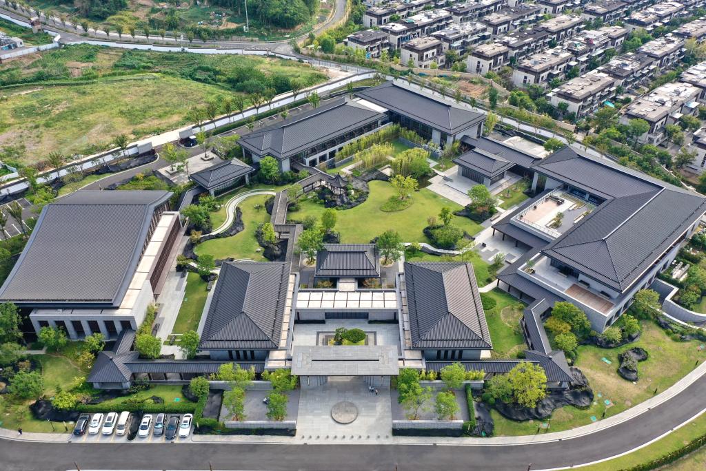? 大禹研究院(南鎮·千山翠酒店)位于大禹紀念館西側,總建筑面積13585平方米,為園林式中式建筑群落。? 整體建筑分為綜合服務區、會議報告區和學術功能區,涵蓋了餐飲、住宿、辦公、教學、學術交流等功能。其中南鎮·千山翠酒店于2022年10月開始運營,內有大型停車場、公共充電樁,房型包含豪華套房、精致大床房、陽臺雙床房、六人學生房、床位共計268個:研修寬8間,能容納324人同時上課;餐廳能滿足近400人同時用餐需求:會議報告...