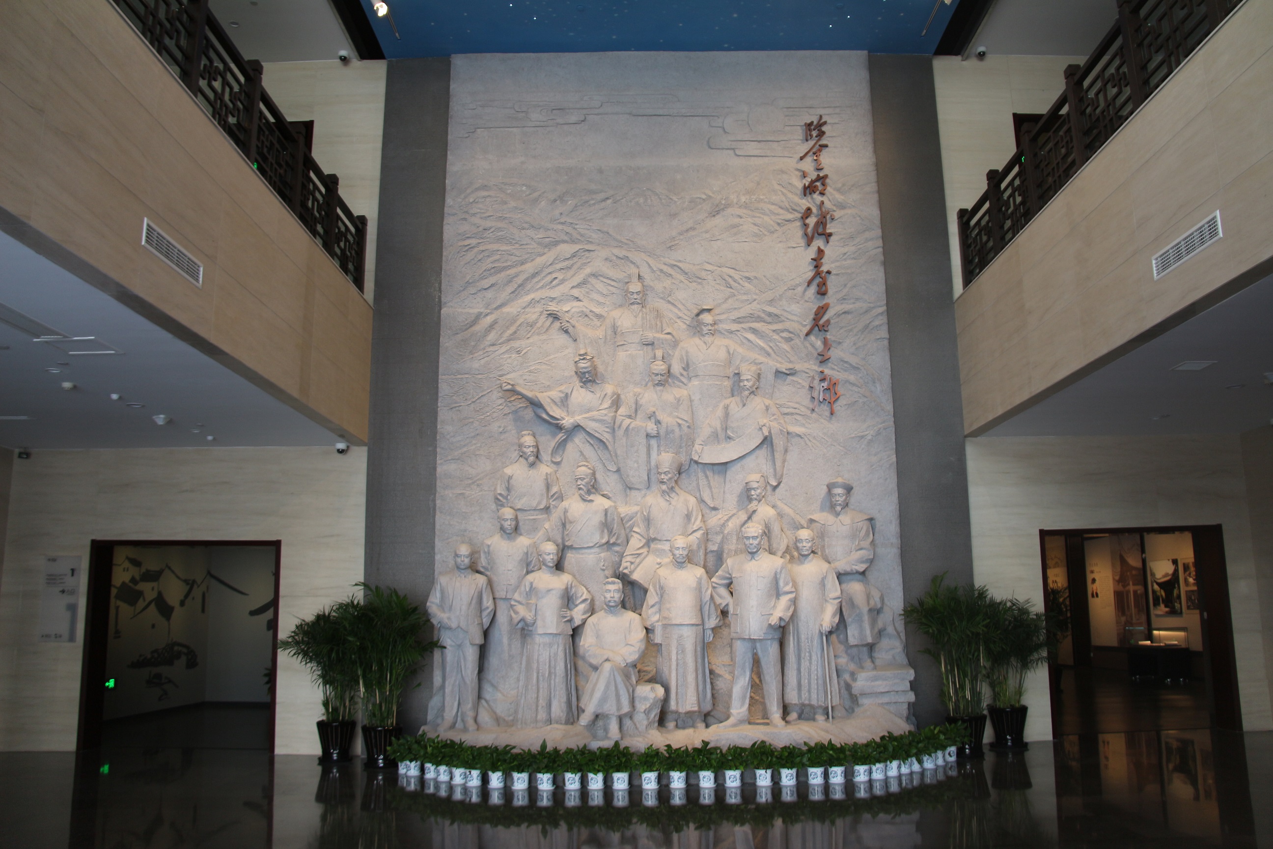 紹興名人館大廳里群像墻以大禹、王羲之、王陽明、徐渭、魯迅、周恩來等17位紹興名人為核心,展示了一個群星璀璨、光耀中華的紹興名人文化,偉人毛澤東曾在詩中贊頌紹興為“鑒湖越臺名士鄉(xiāng)”