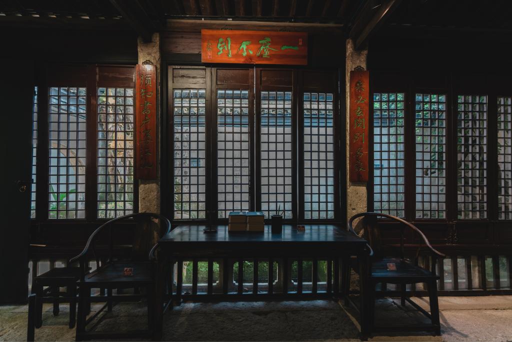 月門上書有“天漢分源”四個大字,此為徐渭之手跡。相傳徐渭認為天池之水乃是銀河流落人間的一股源泉,故而題寫此四字。進入月門,靠左邊的冬青樹,已有200余年樹齡,可以說是見證了書屋的數易其主、滄桑變遷。天池為七尺見方的石砌小池,徐渭稱此池“通泉,深不可測,水旱不涸,若有神異”,故取名“天池”,并以此作為自己的號