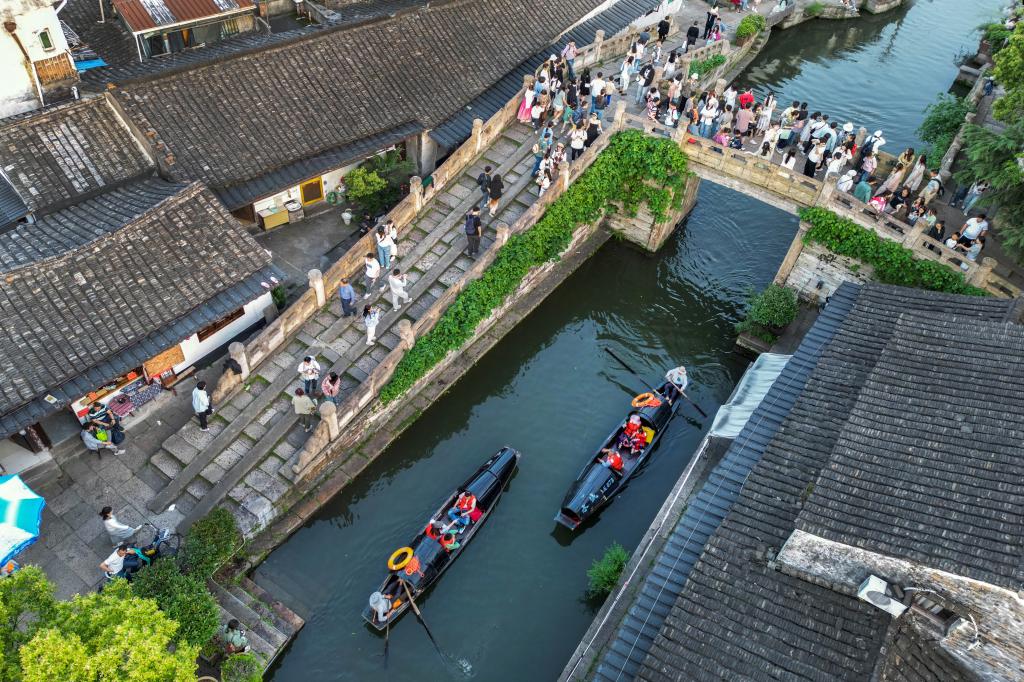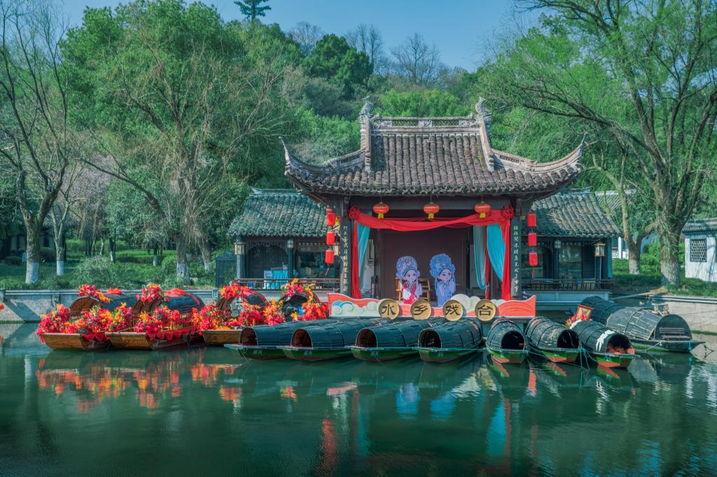 在魯迅故里、城市廣場水巷,開啟一場老紹興水上迎親巡游,伴隨著熱鬧的鑼鼓、喜慶的嗩吶,新人攜手一起跨火盆、過馬鞍、挑蓋頭、拜天地、許誓言,向大家分撒喜糖。在鼓樂聲中,一對新人坐著烏篷水上巡游,將浪漫演繹到極致。圍觀群眾可以加入迎親的船隊,沾沾新人喜氣。新人在眾人的祝福中完成一場傳統水上婚禮,攜手開啟幸福人生。