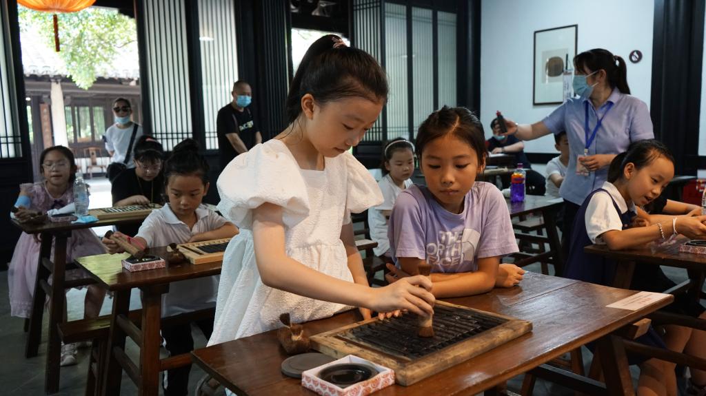 【活動(dòng)內(nèi)容】1.曲水流觴:體驗(yàn)文人投壺雅趣,重現(xiàn)一千六百多年前的書壇盛況。2.扇面描紅:將傳統(tǒng)的描紅從宣紙升級成帶有蘭亭元素的扇面描紅,保留原有的技藝底蘊(yùn),增加描紅的趣味性。3.臨摹《蘭亭序》:通過臨摹來提高孩子們對漢字形成的認(rèn)知,進(jìn)一步學(xué)習(xí)書法的演變史。4.活字印刷:將唐詩宋詞制作成活動(dòng)鉛字,排列在字盤內(nèi),刷墨而上,揭紙而下,制作過程所領(lǐng)略的是漢字印刷變遷的魅力。5.木刻版畫:木板畫上揭紙而起,一...